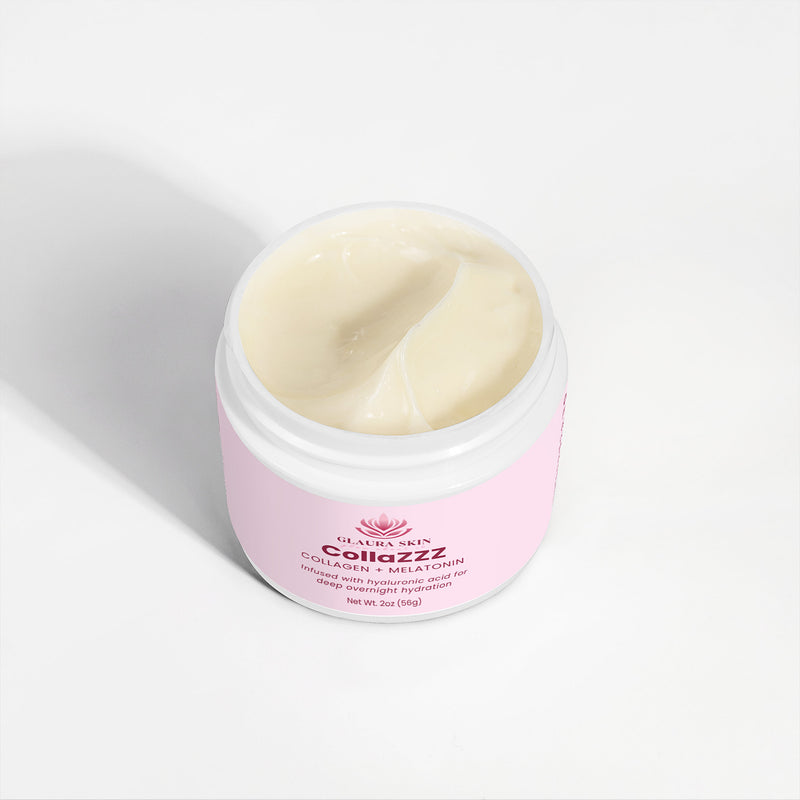 Discover Glaura Skin's luxurious collagen cream, CollaZZZ, designed to complement your nighttime skincare routine with its hydrating and skin-nourishing formula.